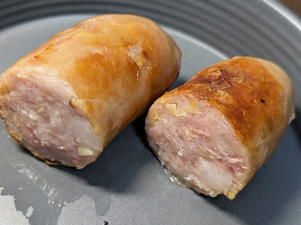 この大きな挽き目によって、口の中ではっきりとわかる「ゴロゴロとしたお肉の食感」が生まれ、噛むたびにその粒から肉汁がジュワーっと溢れ出すのです 。これは、もはやウインナーというよりも、腸詰めにした小さなステーキと呼ぶべき存在感です。